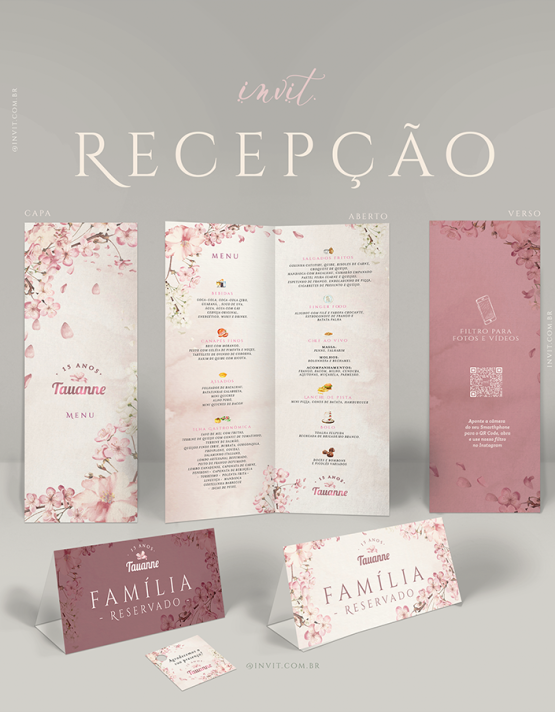 Kit Recepção: Cardápios e mais (arquivos para imprimir) // Modelo 0030: “Cerejeiras🌸”