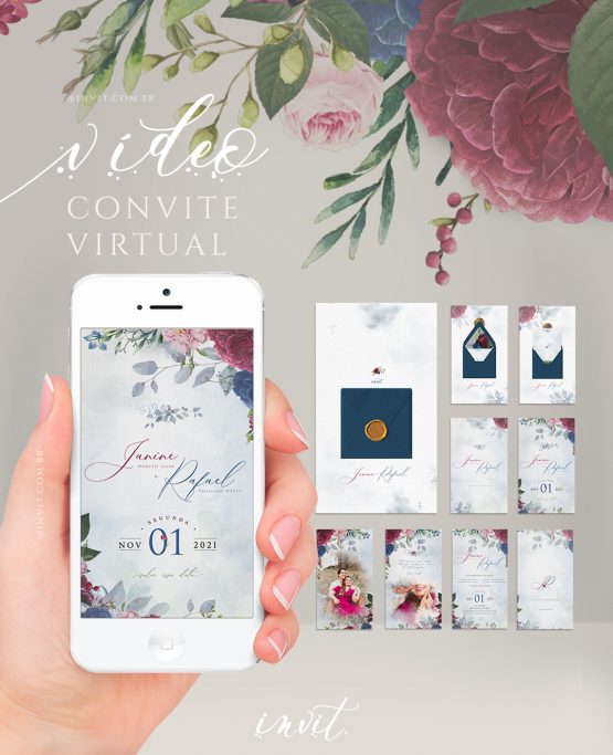 Modelo 0041b: “Marsala Blue ♥💙” | Virtual | Envelope se abre e Convite sái de dentro!