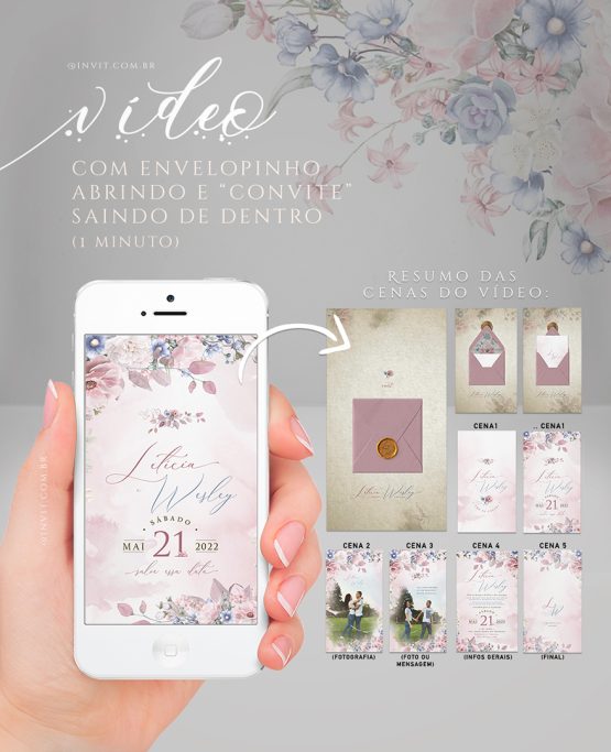 Modelo 0056: “Delicate🌸💙” | Virtual | Envelope se abre e Convite sái de dentro!
