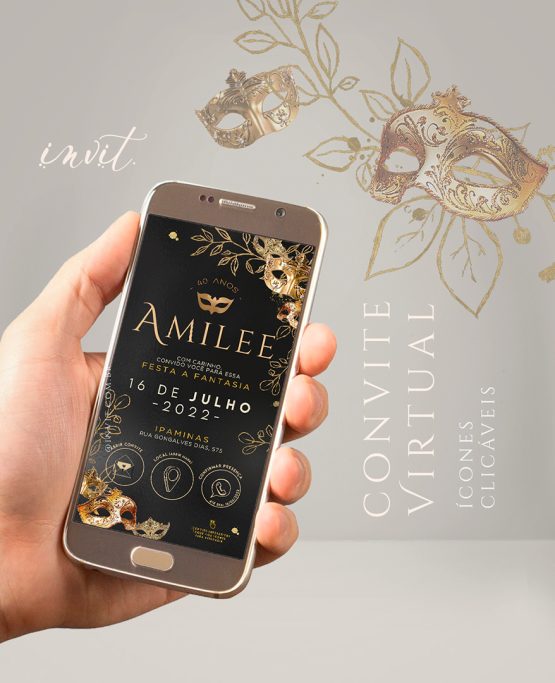 Modelo 0206: “Baile de Máscaras 🎭” | Convite com botões interativos (Ícones clicáveis) que abrem mapas, lista de presentes, confirmação e mais!